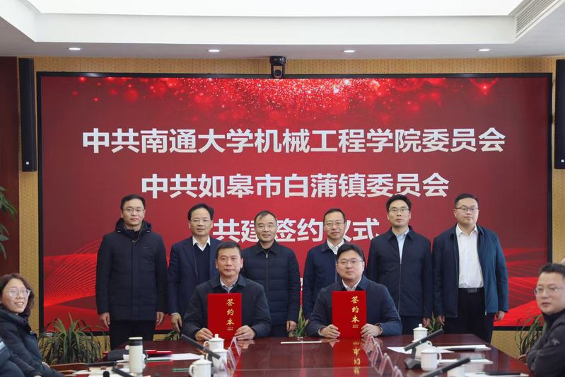 活动第二阶段校地共建由机械工程学院党委书记张志刚主持。机械工程学院院长张福豹介绍了学院基本情况、学科优势及科研成果,白蒲镇党委副书记、镇长储凯详细阐述了白蒲镇的产业基础、发展规划与合作需求。南通华东油压科技有限公司、江苏力源金河铸造有限公司等企业代表分别介绍了企业基本情况。双方围绕校企产学研、人才培养等方面的合作展望进行了深入交流。机械工程学院党委与白蒲镇党委、机械工程学院机械制造工程系党支部与南通华东油压科技有限公司党支部现场签署共建协议,为校地资源共享、优势互补奠定了坚实基础。